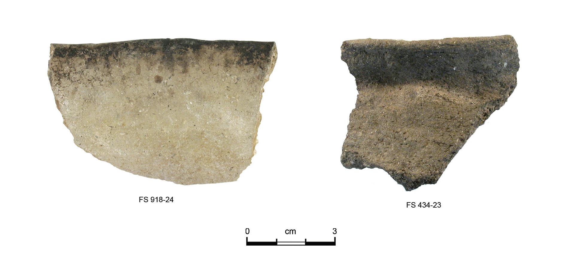 Sherds from LA 1051 investigated durig the Civic Center Project. Photograph by Kathy McRee and Mimi Burling.