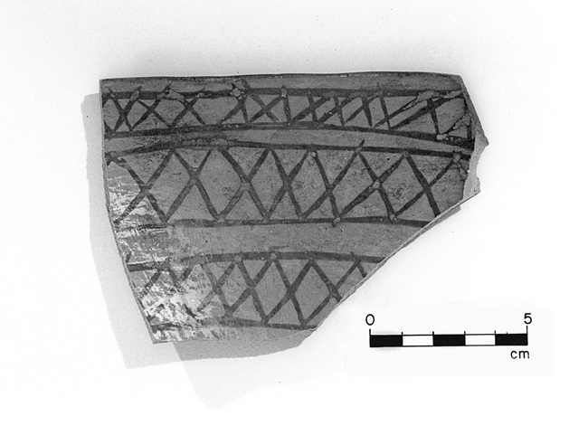 Sherd from LA 169 recovered during the Pena Blanca Project. Photograph by Carol Price.