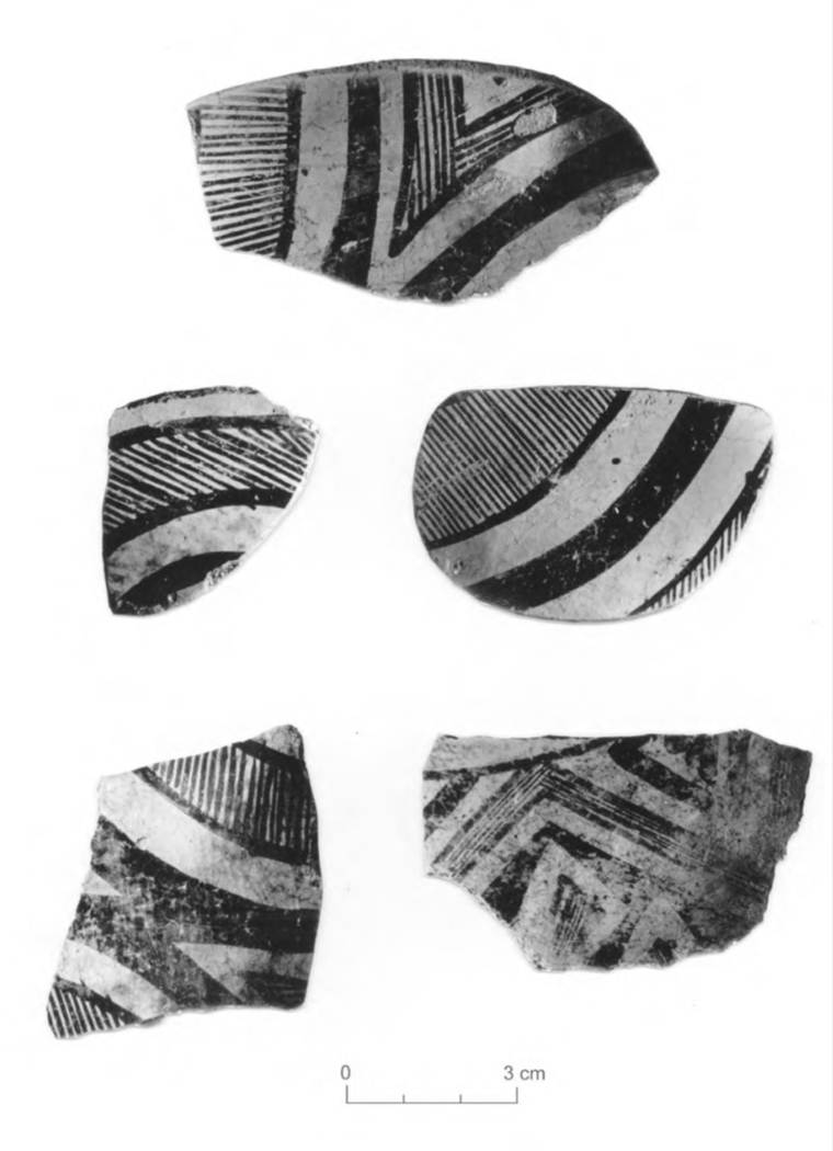 Sherds from LA 70815 investigated during the Luna Highway Project. Photograph by Nancy Warren.