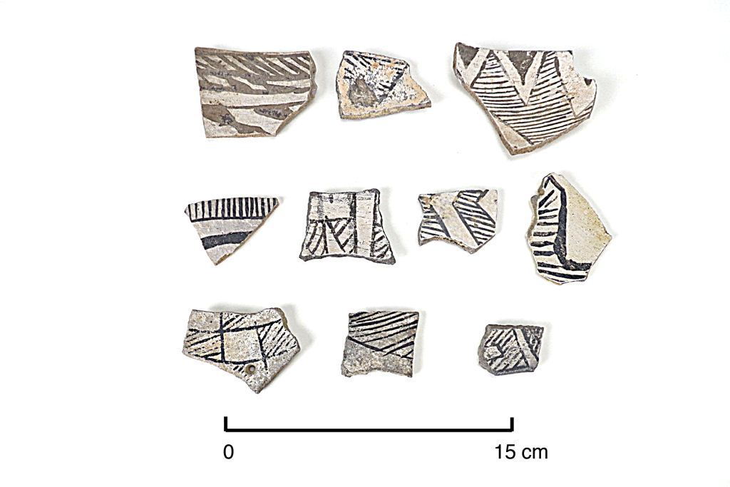 Collection of Chuska tradition type sherds made by Stewart Peckham. Photograph by Daisy Levine and Dennis Brandt.