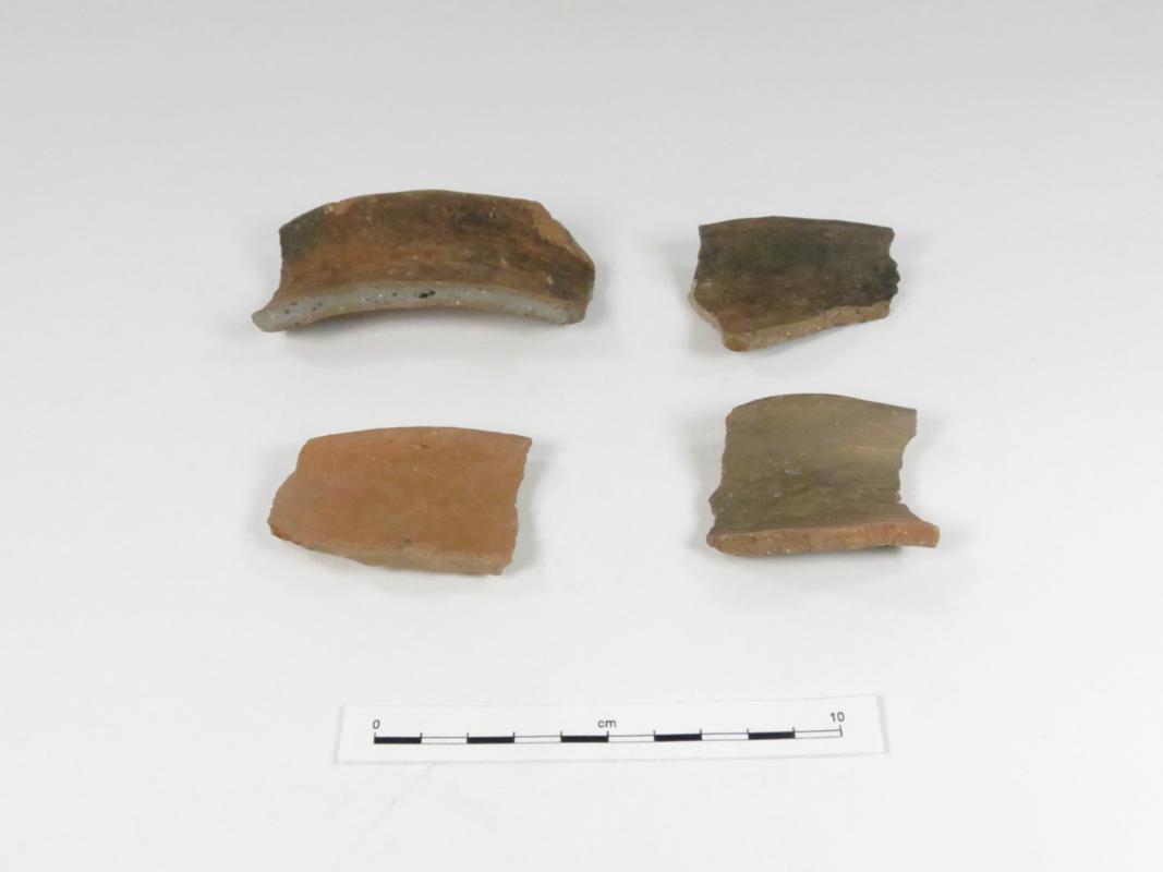 Sherds from LA 10832 recovered during the Bent Highway Project. Photograph by Kathy McRee and Mimi Burling.Photograph by Daisy Levine and Dennis Brandt.