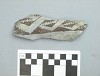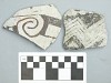 Designs consist of multiple parallel lines sometime embellished with triangles or ticked lines, ribbons, checkerboard patterns, widely spaced straight hachure, squiggle hachure, scalloped or ticked triangles, and scrolls (Hays Gilpin and van Hartesveldt 1998; Windes 1977). Painted designs are often well executed, and a number of elements often occur together in fairly complex patterns. Red Mesa Black-on-white often consists of several distinct motifs combined together to produce several distinct and repeating design combinations in a banded, quartered, or all over design layouts. Repeating designs are often organized in evenly spaced design patterns that are often, separated by a series of parallel lines often producing a distinct precisely executed and well organized pattern of intricate and opposing designs.