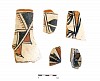 Ogapoge Polychrome is almost exclusively represented by jars although bowls have been noted. Red slips tend to be limited to the lower body and very upper part of the rim, as the white slipped area is larger than the preceding type. A very large portion of the jar is decorated with a bold and naturalistic design. Painted lines are broader then in Tewa Polychrome, and solid designs tend to be larger (Batkin 1987). Particularly common are stylized feather motifs where the tips are often filled with red. Such designs appear to have been derived from western Keres and Zuni matte painted polychrome types (Snow 1982) Differences in design, and the use of carbon paint in Tewa district signify long-term trends which continue to distinguish regional Pueblo pottery traditions.