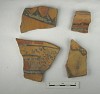 Pottery Mound Glaze Polychrome was described by Voll (1961). This type represents a very localized and distinct glaze ware type that appears to have been produced from the middle fourteenth to late fifteenth century. Pottery Mound Glaze Polychrome seems to reflect the culmination of a local glaze ware along with definite influences from the Hopi region and possibly other Western Pueblo groups. This is supported by the significant number of Hopi trade wares recovered from Pottery Mound. This type reflects some of the best examples of pottery produced by Pueblo potters, although this type was not ever widely traded, and was never even the dominant decorated type at Pottery Mound.