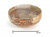 For the first time, a slight majority of bowl interiors are decorated with all-over designs. These all-over designs, however, usual emerged from openings in a banded area which is filled with red slip but without painted decorations. The open areas either emerged from a single or two distinct bold and merging panels that often join and intersect at an angle. Designs within these units are sparsely but boldly executed. While some banded designs are similar to those noted in earlier types, there is much more variety. The banded area is sometimes but not always divided into panels. Flaming lines commonly include double lines filled with red matte paint with open spaces often forming detached areas between bands. Design elements commonly occur on the bowl exterior jars and include ticks, oblique lines, dashes, crosses, zigzag lines, triangles and step triangles, key figures, but stylized birds, captains, and andromorph designs are particular common, and often represent the focus of the design. Exterior decorations are similar to those noted on early forms but tend to be more varied and elaborate. As is the case for earlier forms they tend to be outlined with dark glaze paint and filled with red matte paint.