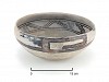 The upper portion of the rim exhibits a slightly widened profile that spans from about the upper quarter or third of the vessel. The upper portions of bowls tend to be deep and straight exhibiting an everted rim and a rounded base. The inside surface of the bowl is slightly convex, while the exterior is straight or slightly recurved. The profile above the shift in slope is wider than the lower portion. The rounded and tapered rim and narrowing toward the angled transition created an elongated elliptical profile for the upper portion of the bowl profile. San Lazaro Glaze Polychrome bowls tend to be polished on both sides. Vessels are often slipped and decorated with glaze and matte pigment on both surfaces. A general shift from lighter to redder slips is reflected, and although an occasional white or pink slip is represented, both the interior and exterior slip tends to be a tan, orange, or red color.