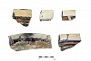 Puaray or Glaze E Polychrome was defined by Mera 1933. This type is distinguished from other glaze rim bowl forms by an elongated rim with dramatic thickening in areas just below the rim that are tapered or rounded (Morales 1997; Warren 1979; Warren and Snow 1976). There is usually a sharp contrast in the wall profile between the thick upper portion near the rim and the thinner and more evenly shaped area further down from the rim. The widening of the area just above this break and directly below the rim, often results in an elliptical-shaped profile under which are straight vessel walls. Both surfaces of the bowl are polished, slipped, and painted. Slip, applied on the interior and upper portion of the exterior surfaces, is yellow, cream, white, pink tan, orange or red.