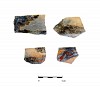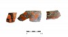 Kotyiti Glaze Glaze-Red-Yellow (Glaze F) were defined by Mera (1933). These types are characterized by bowls that became increasingly narrow and even across the entire profile (Franklin 1997; Morales 1997; Schleher 2010). Vessel profiles are often reflected by a sharp vertical angle or keel commonly evident in vessel and sherd profiles of seventeenth century ceramic types. The common occurrence of such angles reflects the increasing occurrence of shouldered bowl forms characterized by a rounded lower body and a prominent straight at the vessel midpoint. While the straight walls near the rim in Glaze F superficially exhibit Glaze A forms, it is usually easy to distinguish Glaze F from Glaze A forms based on the steep and angled walls and poor quality of paint and design execution.