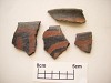 The earliest form of painted pottery produced in this region is referred here to as El Paso Bichrome which reflects forms associated with the beginning of the production of painted brown wares in the El Paso Region at about A.D. 1000 (Miller 1995; Whalen 1981). Pottery assigned to this variant exhibits characteristics indicative of the transition between El Paso Brown and El Paso Polychrome as usually defined. This type is resembles late forms of El Paso Brown, but exhibits red or black painted designs. Designs may be executed in red or black pigment and consist of single or double diagonal lines appended from the rim band. These lines sometimes form triangular and chevron shapes. Vessel forms are predominately represented by seed jars and bowls.
