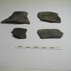 Another group of categories noted for utility ware pottery exhibiting pastes and temper typical of early gray wares produced in the Taos area. These include a range of forms exhibiting unmodified coils or fillets, that usually occur along the neck, which may be assigned to several descriptive categories based on the width of or junctures between coils. This may include pottery that has in other studies been described or illustrated as Taos Plain, Incised, or Corrugated (Peckham and Reed 1963; Wetherington 1968). The recording of various forms of coiled treatments provide for comparisons with developments in other Anasazi regions as well as for the possible examination of chronological trends in coil textures. One form exhibit coils or fillets that are relatively wide. These coils are clearly separated by distinct junctures, rest vertically to each other, and generally do not overlap. Other examples of neckbanded forms exhibit narrow rounded coils as well as examples with overlapping coils or fillets. Sherds belonging to this category may be similar to plain corrugated sherds although sherds of this category tend to be more narrow and limited to neck sherds.